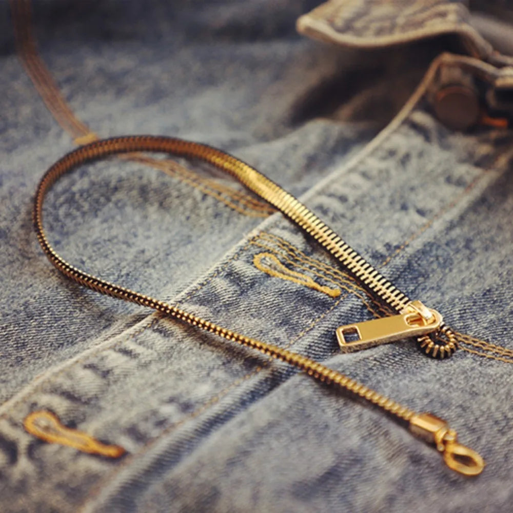 A functional zipper design turned into jewellery. Wear it as a necklace or wrap it as a bracelet. Sharp. Simple. Different.